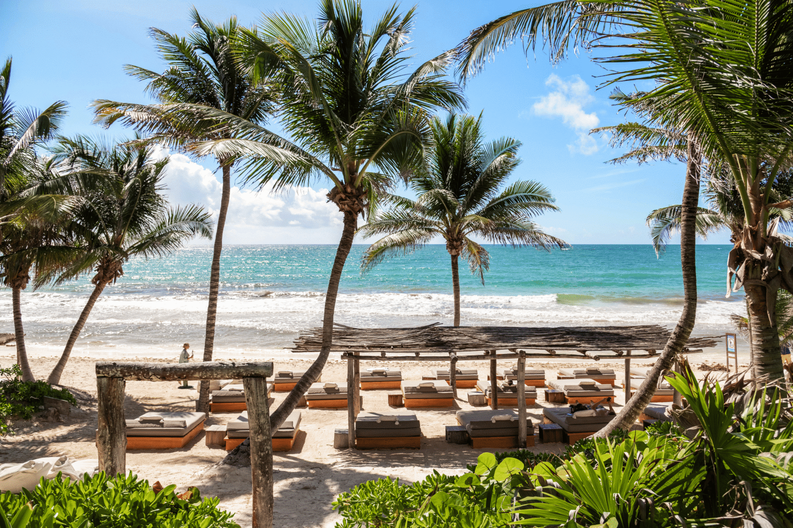 Pero el verdadero lujo aquí es la experiencia. Amanecer con una práctica de yoga frente al mar, recorrer en bicicleta los caminos de arena hacia las ruinas mayas, sumergirse en cenotes de agua cristalina o cerrar el día con una cena a la luz de las velas perfumada con copal. Tulum no se vive con prisa; se saborea.