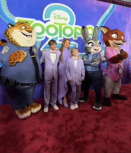 Shakira deslumbra en la alfombra roja de Zootopia 2 con look lila a juego con sus hijos y adelanto de su nuevo tema “Zoo”